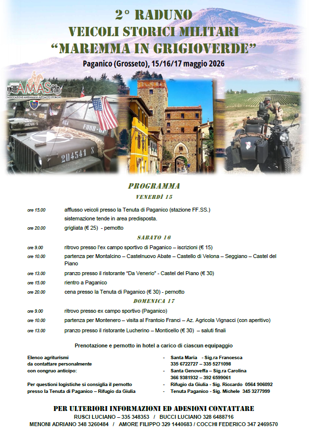 Per informazioni ed adesioni, a cura di ogni socio, comunicare il proprio nominativo in segreteria ai numeri 0564 452942 / 329 1440683, via mail a info@amasmaremma.it o tramite messaggio WhatsApp entro venerdì 17 aprile.